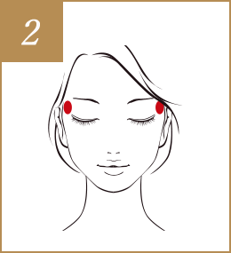 こめかみ部分に付属のEMSパッド(直径約3 cmの円形)を貼り付け、目の周りの筋肉に働きかけます。